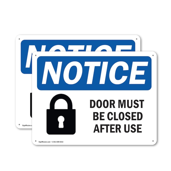 Door Must Be Locked After Use, 14 in W x Rectangle, Plastic