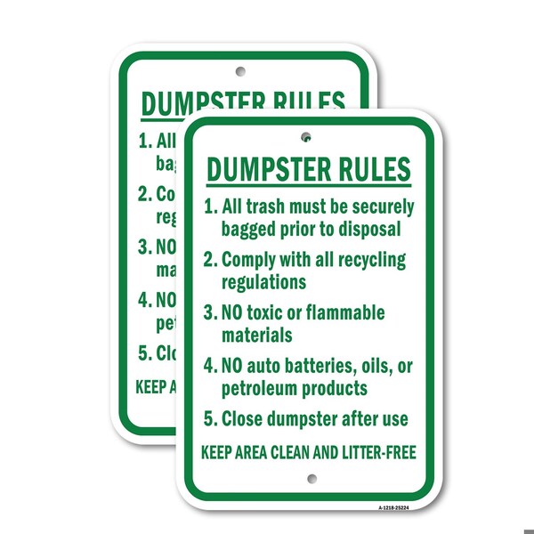 Dumpster Rules 1. All Trash Must Be Securely Bagge Aluminum, 18" x 24", A-1824-25224