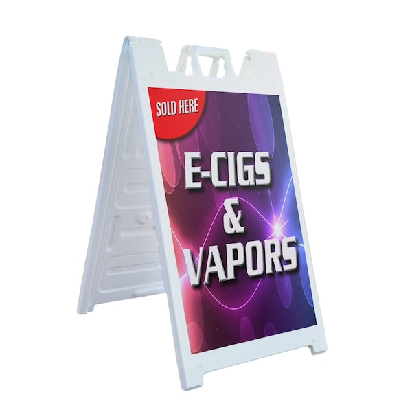 E-cigs & Vapors Sold Here, A-Frame & 2 Decals Installed, Heavy-Duty Plastic Frame