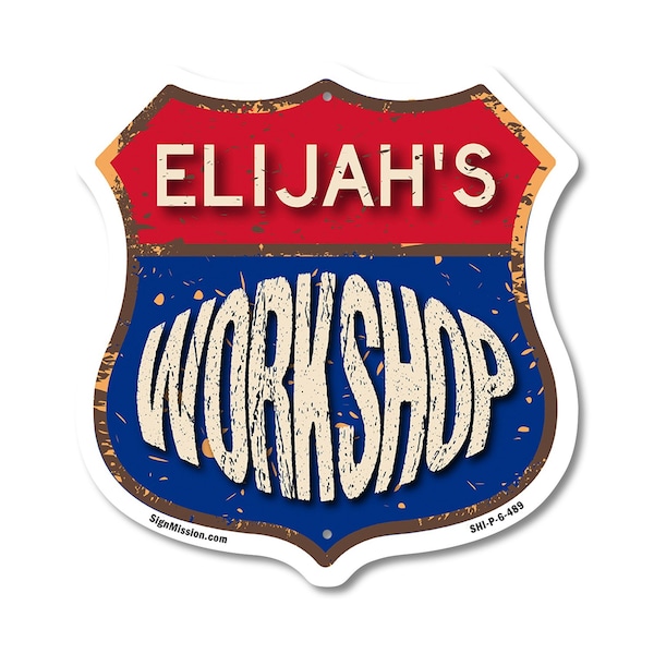 Add a Fun, Personalized Touch to Your Workshop with SignMission's Custom Shield-Shaped Signs Make your Workshop stand out with a sign that's not just eye-catching, but also full of personality! Our shield-shaped signs are the perfect way to add a touch of fun and style to your space. Featuring your name and a sleek, polished design, these signs are crafted to bring a modern, professional vibe to any Workshop, workshop, or man cave. With their bold look and durable commercial-grade plastic construction, they'll grab attention and give your space that extra bit of flair for years to come. Bring Modern Durability to Your Workshop Our shield-shaped signs aren't just stylish-they're designed with long-lasting, commercial-grade plastic that ensures both a sleek finish and unbeatable durability. Perfect for any indoor or outdoor space, these signs are resistant to cracking, fading, and weather damage. They come with pre-drilled holes for easy mounting, so you can display them effortlessly wherever they look best. Give your Workshop a polished and timeless appeal with a sign that combines charm and toughness. Our shield-shaped signs are expertly crafted to bring both style and resilience to your space while featuring your personalized touch.