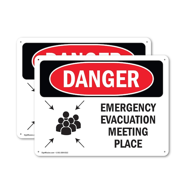 Emergency Evacuation Meeting Place, 10 in W x Rectangle, Plastic