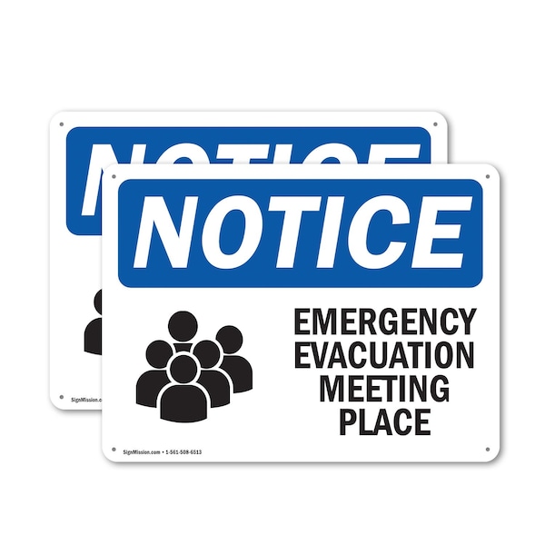 Emergency Evacuation Meeting Place, 14 in W x Rectangle, Plastic
