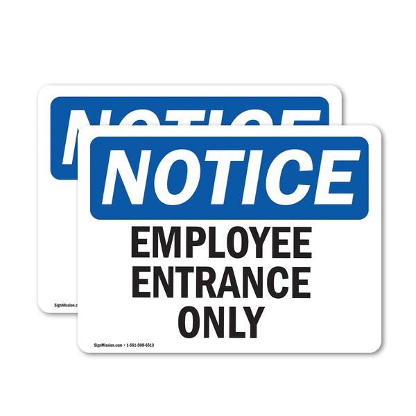 Employee Entrance Only OSHA Notice Sign, Vinyl Decal, 18in W x 12in L, 2PK