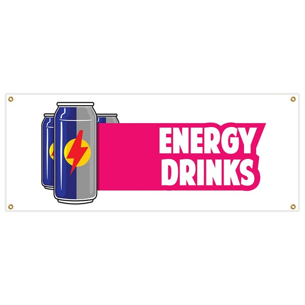 Energy Drinks Banner Heavy Duty 13 Oz Vinyl with Grommets Single Sided