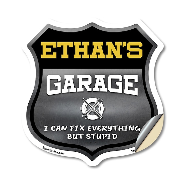 Add a Fun, Personalized Touch to Your Garage with SignMission's Custom Shield-Shaped Vinyl Decals Make your garage stand out with a decal that's not just eye-catching, but also full of personality! Our shield-shaped vinyl decals are the perfect way to add a touch of fun and style to your space. Featuring your name and a sleek, bold design, these decals bring a modern, professional vibe to any garage, workshop, or man cave. With their vibrant look and high-quality vinyl construction, they'll grab attention and give your space that extra bit of flair for years to come. Bring Durable Style to Your Garage Our shield-shaped decals are designed with premium 3M UV-protected, weather-resistant vinyl to ensure a long-lasting finish. Perfect for indoor and outdoor use, these decals are resistant to fading, cracking, and peeling. With an easy peel-and-stick application, you can quickly add your personalized touch to walls, doors, windows, or toolboxes. Wherever you place it, this decal adds character and charm that will stand the test of time. Our shield-shaped vinyl decals are carefully crafted to bring both style and resilience to your space while showcasing your personalized touch. From the durable materials to the striking design, these decals are built to last and bring personality to your garage for years. Plus, they're backed by our 100% satisfaction guarantee, so you can be sure you're getting a decal you'll love!