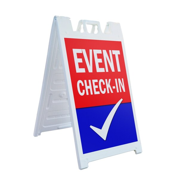 Event Check-in, A-Frame & 2 Decals Installed, Heavy-Duty Plastic Frame