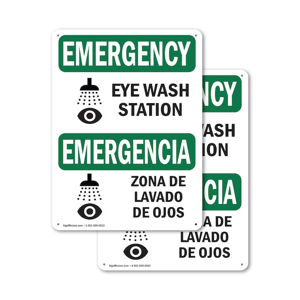 Eye Wash Station Bilingual, 10 in W x Rectangle, Plastic