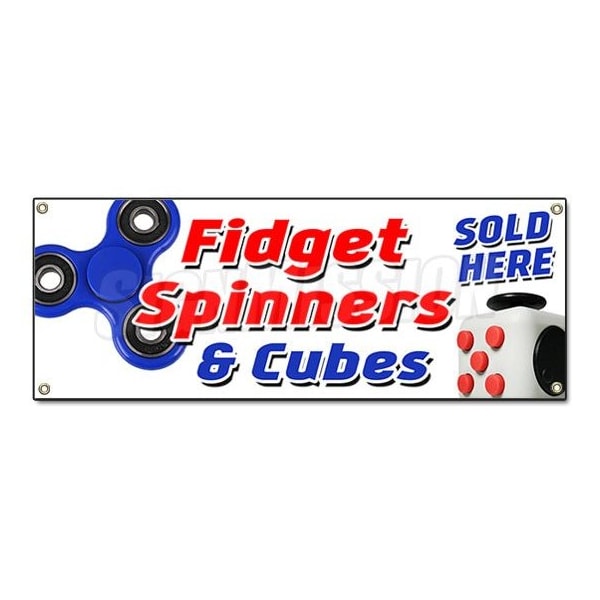 FIDGET SPINNER & CUBE BANNER SIGN tri-spinner edc toy stress reducer adhd fydget