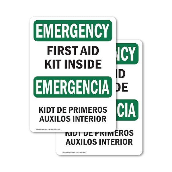 First Aid Kit Inside Bilingual, 7 in W x Rectangle, Vinyl Decal