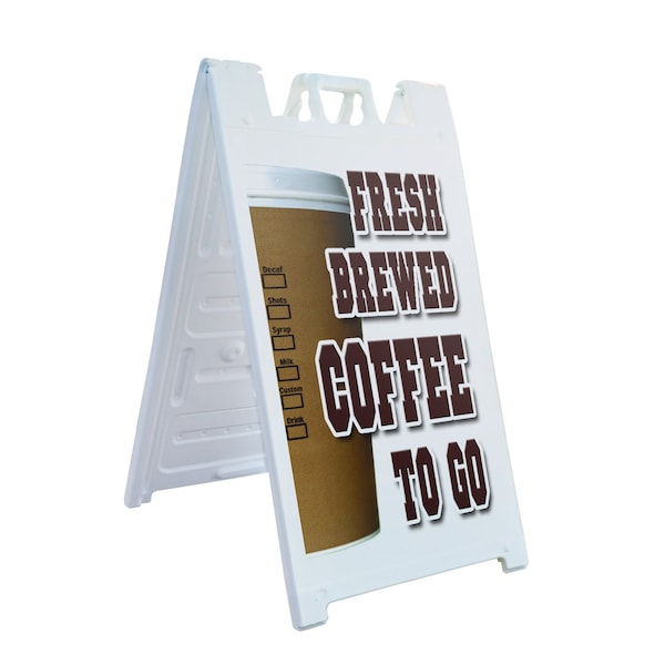 Fresh Brewed Coffee To Go, A-Frame & 2 Decals Installed, Heavy-Duty Plastic Frame