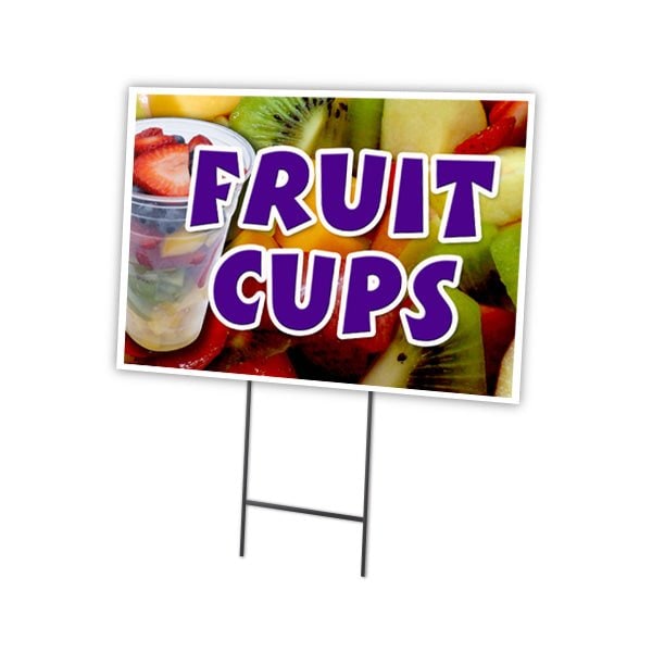 Fruit Cups Yard Sign & Stake outdoor plastic coroplast window, C-1216-DS-Fruit Cups