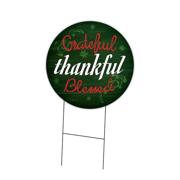 Grateful Thankful Blessed Double Sided Corrugated Plastic Circle Yard Sign