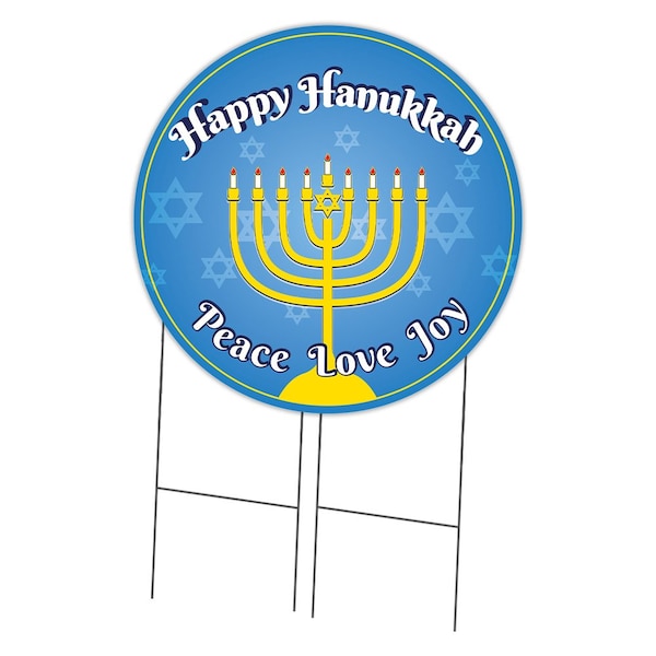 Happy Hanukkah Double Sided Corrugated Plastic Circle Yard Sign