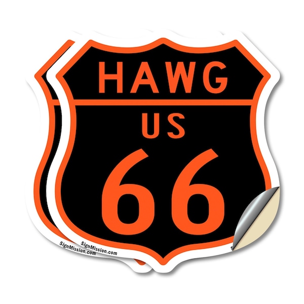 Hawg Us 66, 4 inch X 4 inch, Vinyl Decal, 2PK