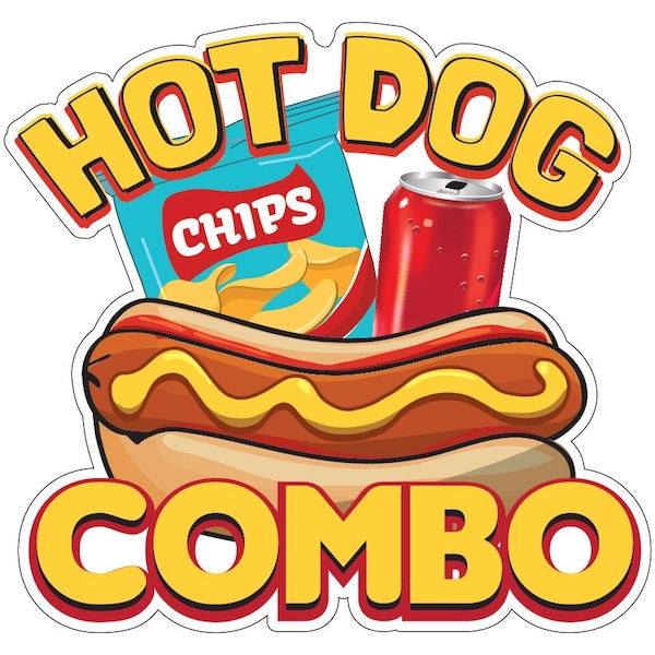 This Hot Dog Combo Decal is a great way to advertise your buisness This decal is made from heavy duty laminated outdoor vinyl and our inks are rated for 5+years of outdoor use and a lifetime of indoor use, Every SignMission decal features a High-Definition image that pops with color and is sure to bring in customers. Something for Everyone We've got a wide range of American-made Decals just like this to promote your buisness, From Apple Crisp to Tostadas we have a decal for every need Colorful and Durable SignMission Decals are crafted with heavy duty laminated outdoor vinyl and printed with the highest quality UV-treated inks in the industry, so they won't fade even in direct sunlight. When you're ready to remove it, the decal peels off easily without leaving any sticky residue behind. Product Details: Hot Dog Combo Decal Heavy Duty Laminated Outdoor Viny Indoor and Outdoor Use Fade Resistant Dimension: 12''