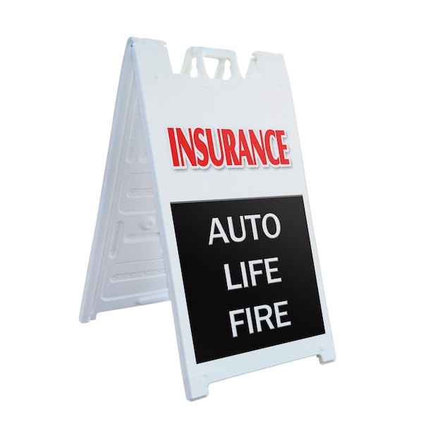 Insurance Auto Life Fire, A-Frame & 2 Decals Installed, Heavy-Duty Plastic Frame