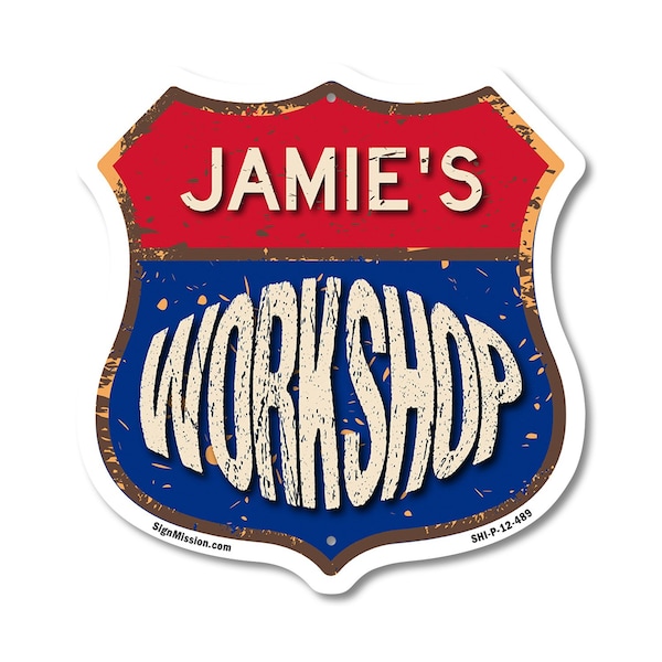 Add a Fun, Personalized Touch to Your Workshop with SignMission's Custom Shield-Shaped Signs Make your Workshop stand out with a sign that's not just eye-catching, but also full of personality! Our shield-shaped signs are the perfect way to add a touch of fun and style to your space. Featuring your name and a sleek, polished design, these signs are crafted to bring a modern, professional vibe to any Workshop, workshop, or man cave. With their bold look and durable commercial-grade plastic construction, they'll grab attention and give your space that extra bit of flair for years to come. Bring Modern Durability to Your Workshop Our shield-shaped signs aren't just stylish-they're designed with long-lasting, commercial-grade plastic that ensures both a sleek finish and unbeatable durability. Perfect for any indoor or outdoor space, these signs are resistant to cracking, fading, and weather damage. They come with pre-drilled holes for easy mounting, so you can display them effortlessly wherever they look best. Give your Workshop a polished and timeless appeal with a sign that combines charm and toughness. Our shield-shaped signs are expertly crafted to bring both style and resilience to your space while featuring your personalized touch.