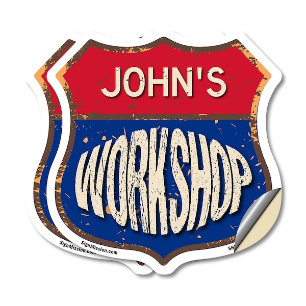 Add a Fun, Personalized Touch to Your Workshop with SignMission's Custom Shield-Shaped Vinyl Decals Make your Workshop stand out with a decal that's not just eye-catching, but also full of personality! Our shield-shaped vinyl decals are the perfect way to add a touch of fun and style to your space. Featuring your name and a sleek, bold design, these decals bring a modern, professional vibe to any Workshop, workshop, or man cave. With their vibrant look and high-quality vinyl construction, they'll grab attention and give your space that extra bit of flair for years to come. Bring Durable Style to Your Workshop Our shield-shaped decals are designed with premium 3M UV-protected, weather-resistant vinyl to ensure a long-lasting finish. Perfect for indoor and outdoor use, these decals are resistant to fading, cracking, and peeling. With an easy peel-and-stick application, you can quickly add your personalized touch to walls, doors, windows, or toolboxes. Wherever you place it, this decal adds character and charm that will stand the test of time.