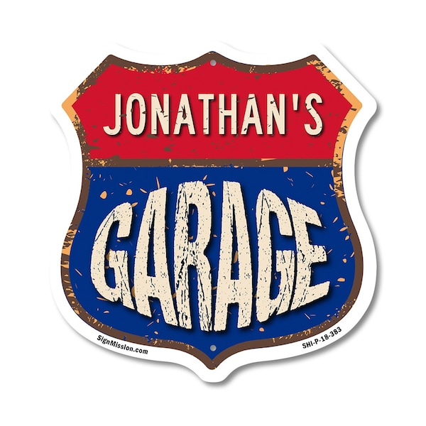 Add a Fun, Personalized Touch to Your Garage with SignMission's Custom Shield-Shaped Signs Make your garage stand out with a sign that's not just eye-catching, but also full of personality! Our shield-shaped signs are the perfect way to add a touch of fun and style to your space. Featuring your name and a sleek, polished design, these signs are crafted to bring a modern, professional vibe to any garage, workshop, or man cave. With their bold look and durable commercial-grade plastic construction, they'll grab attention and give your space that extra bit of flair for years to come. Bring Modern Durability to Your Garage Our shield-shaped signs aren't just stylish-they're designed with long-lasting, commercial-grade plastic that ensures both a sleek finish and unbeatable durability. Perfect for any indoor or outdoor space, these signs are resistant to cracking, fading, and weather damage. They come with pre-drilled holes for easy mounting, so you can display them effortlessly wherever they look best. Give your garage a polished and timeless appeal with a sign that combines charm and toughness. Our shield-shaped signs are expertly crafted to bring both style and resilience to your space while featuring your personalized touch.