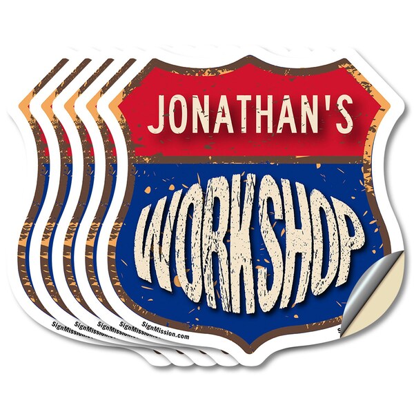 Add a Fun, Personalized Touch to Your Workshop with SignMission's Custom Shield-Shaped Vinyl Decals Make your Workshop stand out with a decal that's not just eye-catching, but also full of personality! Our shield-shaped vinyl decals are the perfect way to add a touch of fun and style to your space. Featuring your name and a sleek, bold design, these decals bring a modern, professional vibe to any Workshop, workshop, or man cave. With their vibrant look and high-quality vinyl construction, they'll grab attention and give your space that extra bit of flair for years to come. Bring Durable Style to Your Workshop Our shield-shaped decals are designed with premium 3M UV-protected, weather-resistant vinyl to ensure a long-lasting finish. Perfect for indoor and outdoor use, these decals are resistant to fading, cracking, and peeling. With an easy peel-and-stick application, you can quickly add your personalized touch to walls, doors, windows, or toolboxes. Wherever you place it, this decal adds character and charm that will stand the test of time.