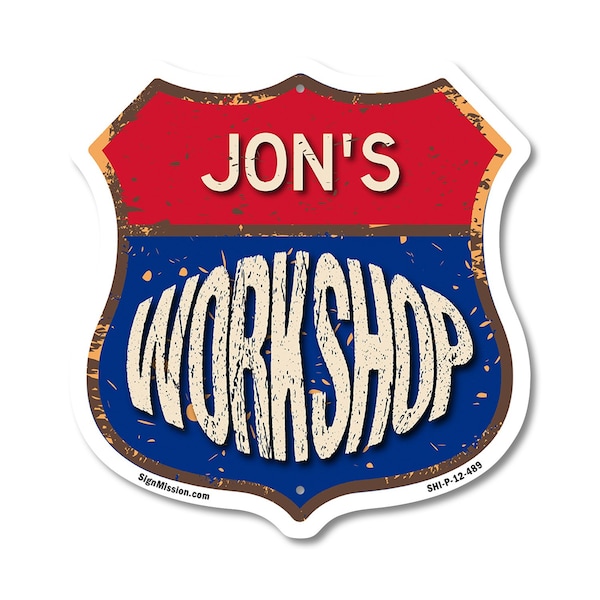 Add a Fun, Personalized Touch to Your Workshop with SignMission's Custom Shield-Shaped Signs Make your Workshop stand out with a sign that's not just eye-catching, but also full of personality! Our shield-shaped signs are the perfect way to add a touch of fun and style to your space. Featuring your name and a sleek, polished design, these signs are crafted to bring a modern, professional vibe to any Workshop, workshop, or man cave. With their bold look and durable commercial-grade plastic construction, they'll grab attention and give your space that extra bit of flair for years to come. Bring Modern Durability to Your Workshop Our shield-shaped signs aren't just stylish-they're designed with long-lasting, commercial-grade plastic that ensures both a sleek finish and unbeatable durability. Perfect for any indoor or outdoor space, these signs are resistant to cracking, fading, and weather damage. They come with pre-drilled holes for easy mounting, so you can display them effortlessly wherever they look best. Give your Workshop a polished and timeless appeal with a sign that combines charm and toughness. Our shield-shaped signs are expertly crafted to bring both style and resilience to your space while featuring your personalized touch.