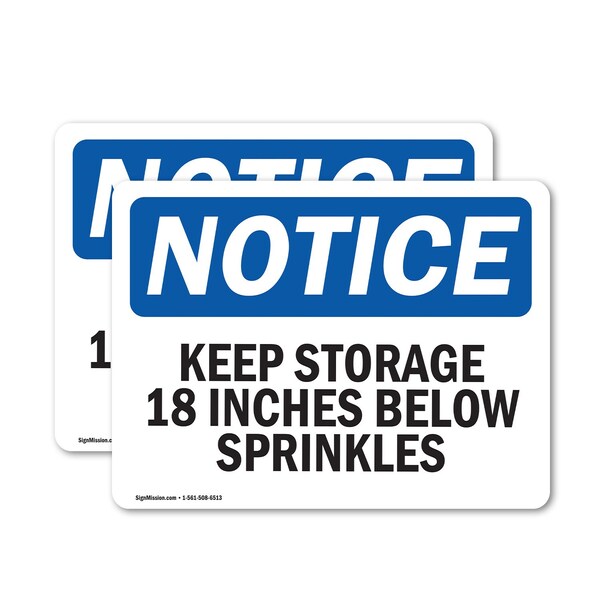 Keep Storage 18 Inches Below Sprinklers, 7 in W x Rectangle, Vinyl Decal