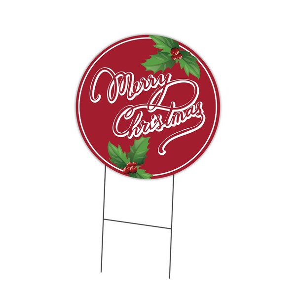 Merry Christmas 2 Double Sided Corrugated Plastic Circle Yard Sign
