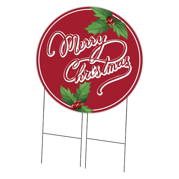 Merry Christmas 2 Double Sided Corrugated Plastic Circle Yard Sign