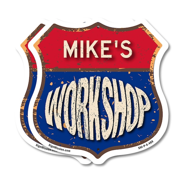 Add a Fun, Personalized Touch to Your Workshop with SignMission's Custom Shield-Shaped Signs Make your Workshop stand out with a sign that's not just eye-catching, but also full of personality! Our shield-shaped signs are the perfect way to add a touch of fun and style to your space. Featuring your name and a sleek, polished design, these signs are crafted to bring a modern, professional vibe to any Workshop, workshop, or man cave. With their bold look and durable commercial-grade plastic construction, they'll grab attention and give your space that extra bit of flair for years to come. Bring Modern Durability to Your Workshop Our shield-shaped signs aren't just stylish-they're designed with long-lasting, commercial-grade plastic that ensures both a sleek finish and unbeatable durability. Perfect for any indoor or outdoor space, these signs are resistant to cracking, fading, and weather damage. They come with pre-drilled holes for easy mounting, so you can display them effortlessly wherever they look best. Give your Workshop a polished and timeless appeal with a sign that combines charm and toughness. Our shield-shaped signs are expertly crafted to bring both style and resilience to your space while featuring your personalized touch.