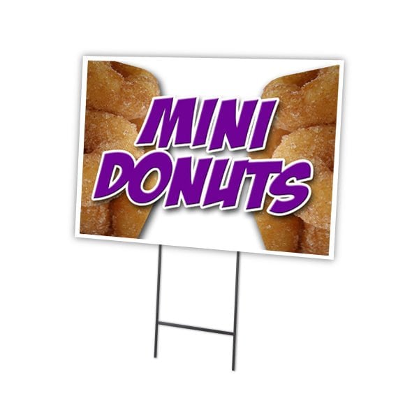 Mini Donuts Yard Sign & Stake outdoor plastic coroplast window, C-1824 Mini Donuts