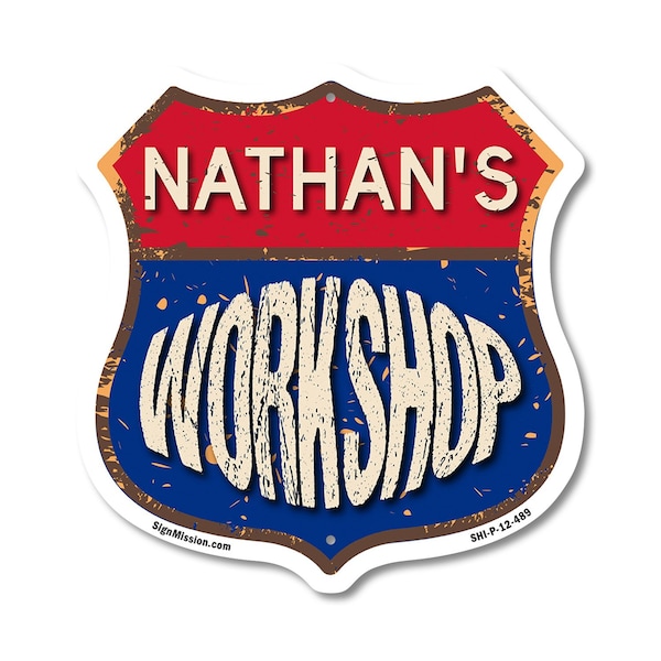 Add a Fun, Personalized Touch to Your Workshop with SignMission's Custom Shield-Shaped Signs Make your Workshop stand out with a sign that's not just eye-catching, but also full of personality! Our shield-shaped signs are the perfect way to add a touch of fun and style to your space. Featuring your name and a sleek, polished design, these signs are crafted to bring a modern, professional vibe to any Workshop, workshop, or man cave. With their bold look and durable commercial-grade plastic construction, they'll grab attention and give your space that extra bit of flair for years to come. Bring Modern Durability to Your Workshop Our shield-shaped signs aren't just stylish-they're designed with long-lasting, commercial-grade plastic that ensures both a sleek finish and unbeatable durability. Perfect for any indoor or outdoor space, these signs are resistant to cracking, fading, and weather damage. They come with pre-drilled holes for easy mounting, so you can display them effortlessly wherever they look best. Give your Workshop a polished and timeless appeal with a sign that combines charm and toughness. Our shield-shaped signs are expertly crafted to bring both style and resilience to your space while featuring your personalized touch.