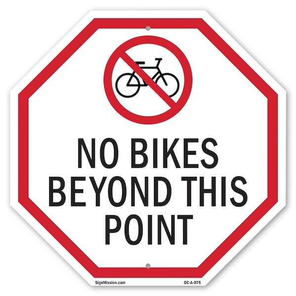 No Bikes Beyond This Point, 6 Inch X 6 Inch, Plastic Sign