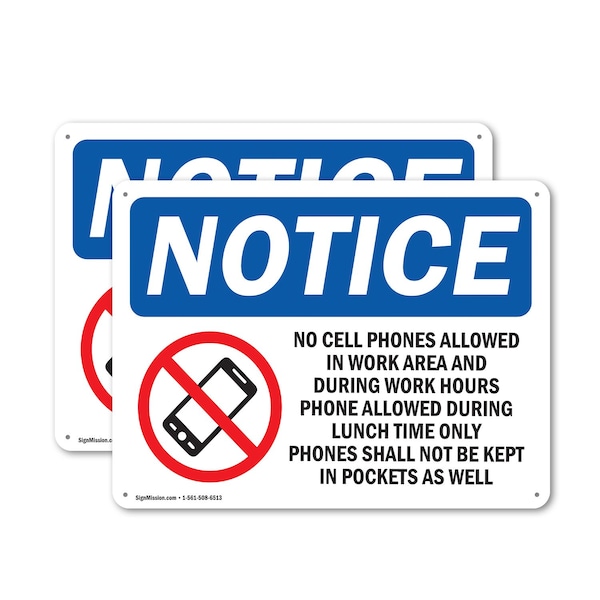 No Cell Phones Allowed In Work, 10 in W x Rectangle, Plastic