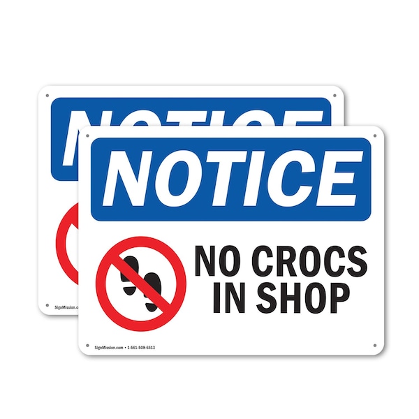 No Crocs In Shop, 14 in W x Rectangle, Plastic