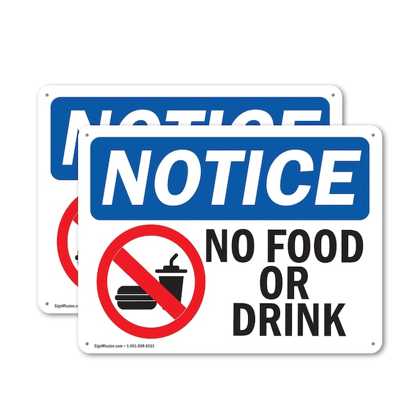 No Food Or Drink, 10 in W x Rectangle, Plastic