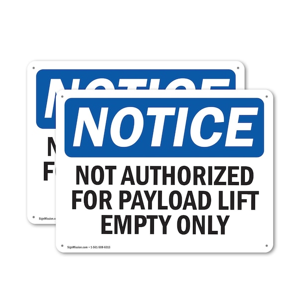 Not Authorized For Payload Lift Empty Only, 10 in W x Rectangle, Plastic