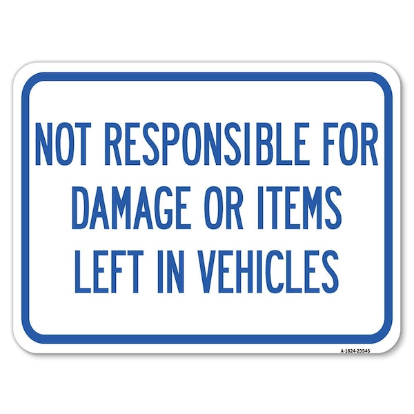Not Responsible for Damage or Items Left in Vehicles Rust Proof Parking, A-1824-23545