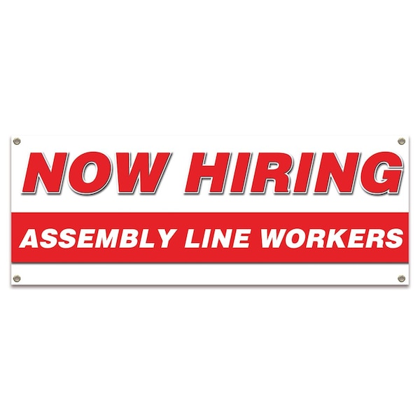 Now Hiring Assembly Line Workers Banner Apply Inside Accepting Application Single Sided