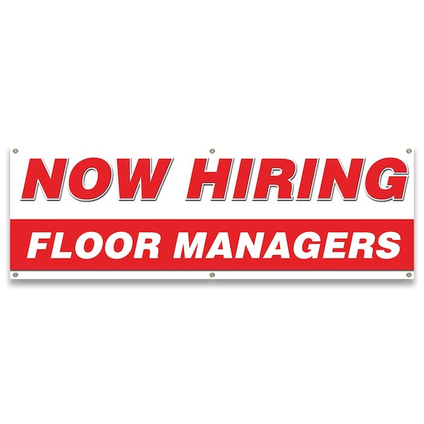Now Hiring Floor Managers Banner Apply Inside Accepting Application, 24" x 72", B-72-30245
