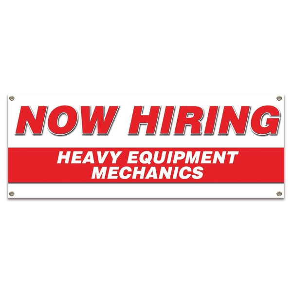 Now Hiring Heavy Equipment Mechanics Banner Apply Inside Accepting Application Single Sided