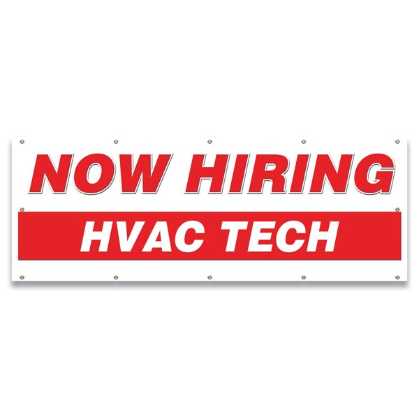 Now Hiring HVAC Tech Banner Apply Inside Accepting Application Single Sided