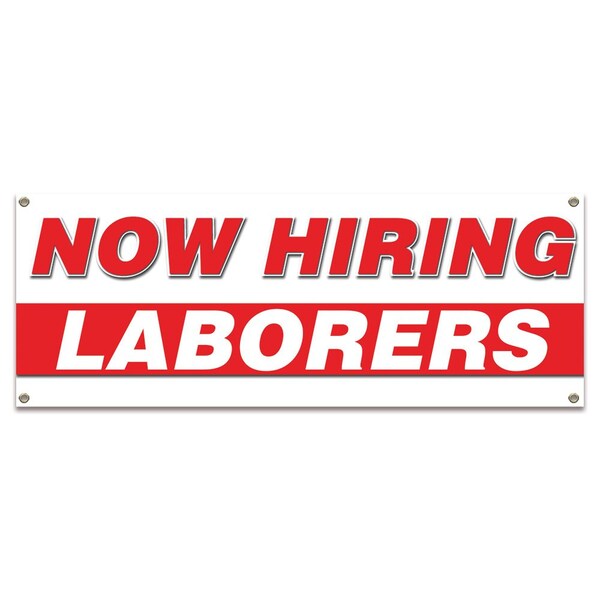 Now Hiring Laborers Banner Apply Inside Accepting Application Single Sided