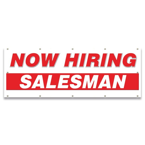 Now Hiring Salesman Banner Apply Inside Accepting Application Single Sided