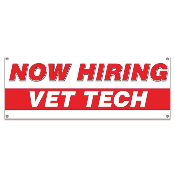 Now Hiring Vet Tech Banner Apply Inside Accepting Application Single Sided