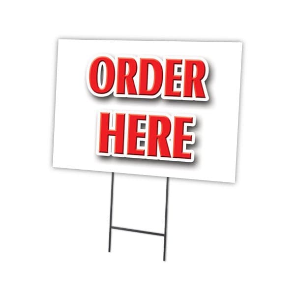 Order Here Yard Sign & Stake outdoor plastic coroplast window, C-1824 Order Here