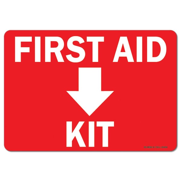 OSHA, 5" Height, Decal, 7" x 5", Landscape, First Aid Kit with Down