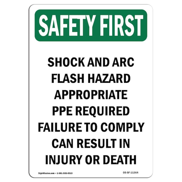 OSHA, 7" Height, Decal, Portrait, Shock & Arc Flash Hazard Appropriate