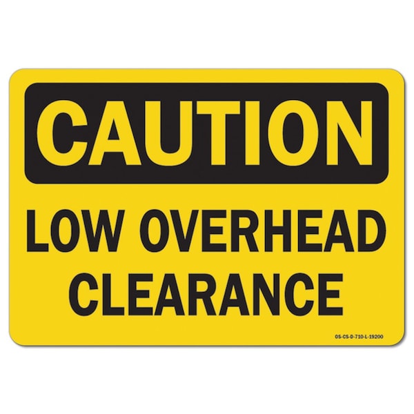 OSHA Caution, 7" Height, Decal, 10" x 7", Landscape, Low Overhead Clearance