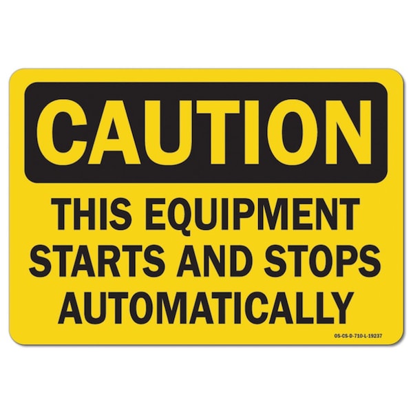 OSHA Caution, 7" Height, Rigid Plastic, 10" x 7", Landscape, Starts and Stops