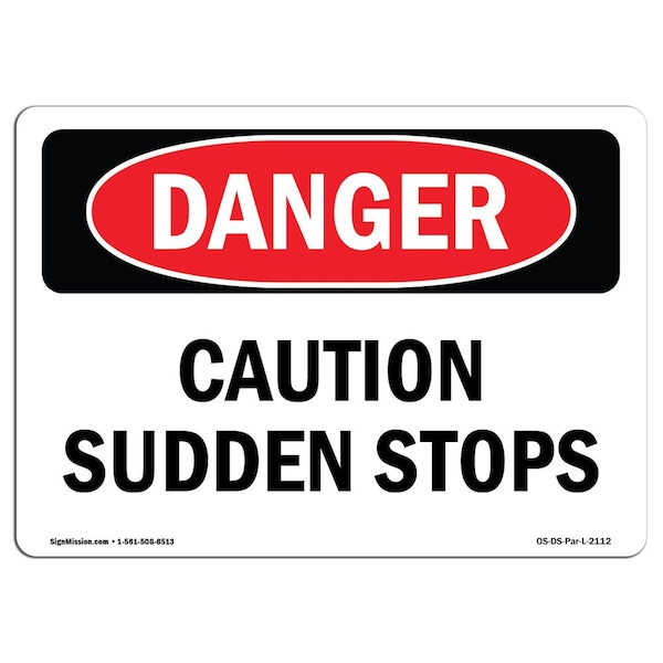 OSHA Danger, 7" Width, Decal, 7" W, 10" L, Landscape, Caution Sudden Stops